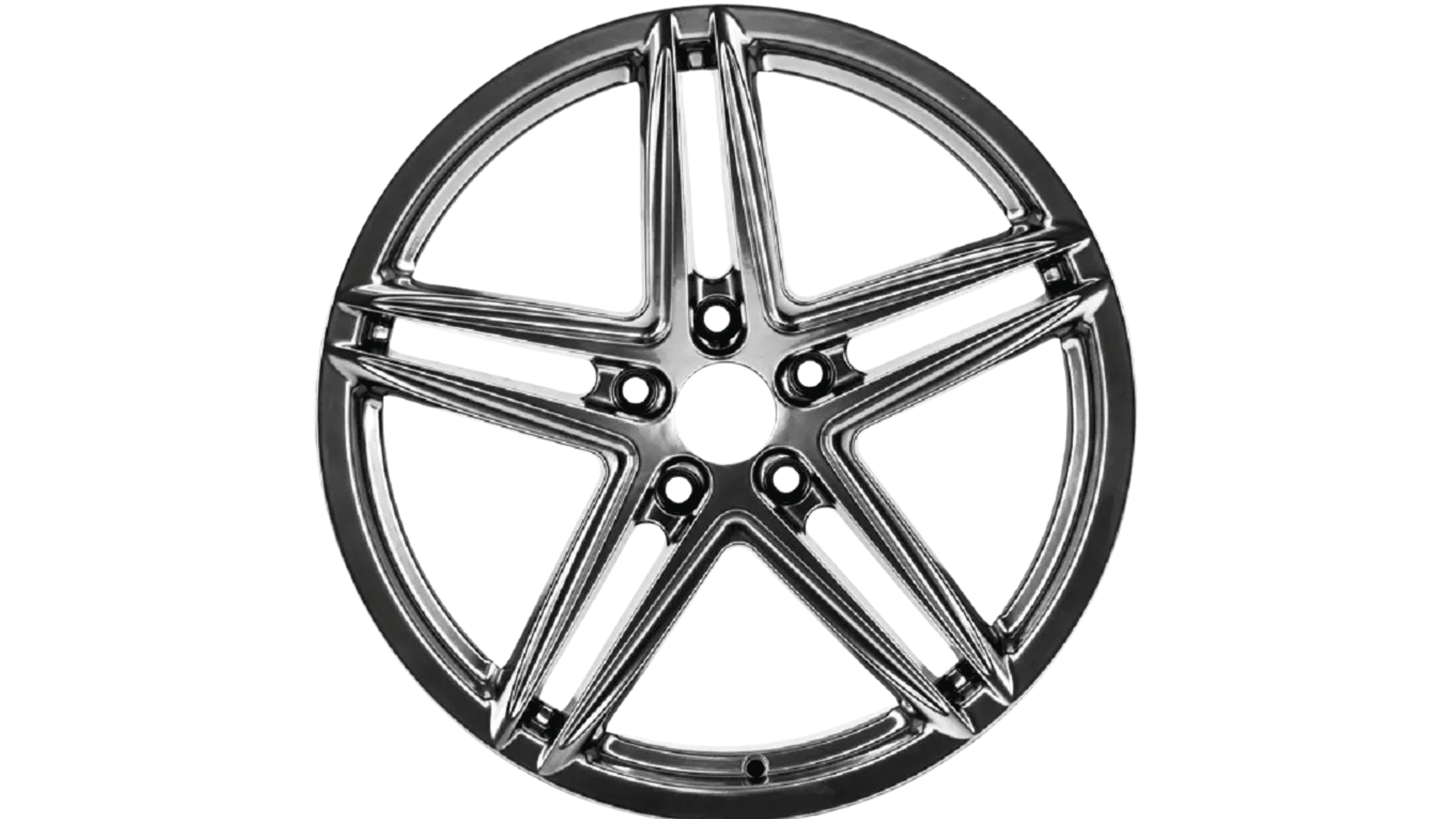 The A025 is an 18-inch cast aluminum alloy wheel designed for sporty sedans and small SUVs. Its classic split 5-spoke design brings a clean, athletic look available in Hyper Black, Matte Black, Gun Grey Machine, and Black Machine finishes.